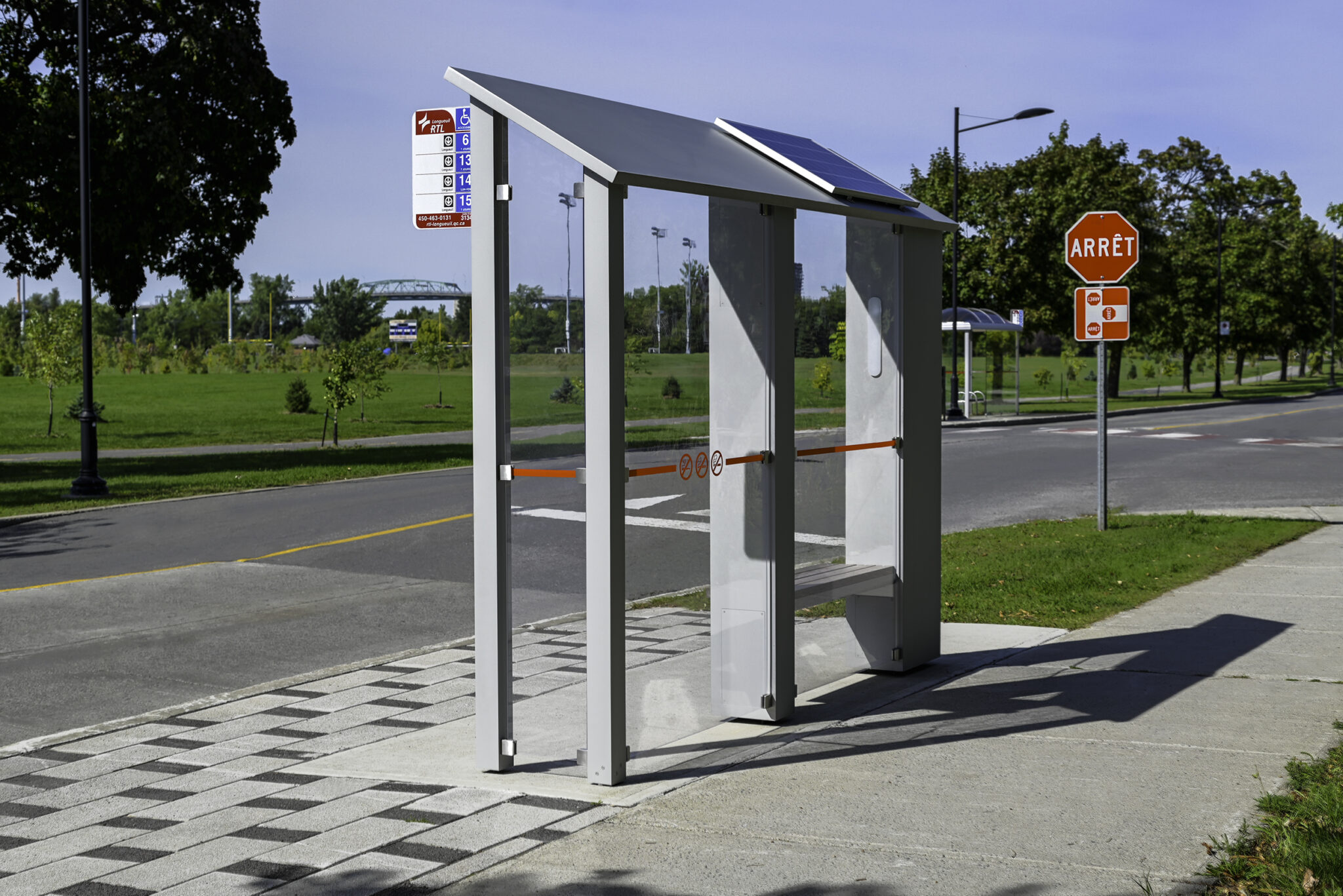 The result is a contemporary and versatile bus shelter, designed to meet the functional, technical and aesthetic demands of an urban space. Its modularity and quality of finishes make it a sustainable solution that can adapt to a variety of sites within the territory of the Réseau de transport de Longueuil.