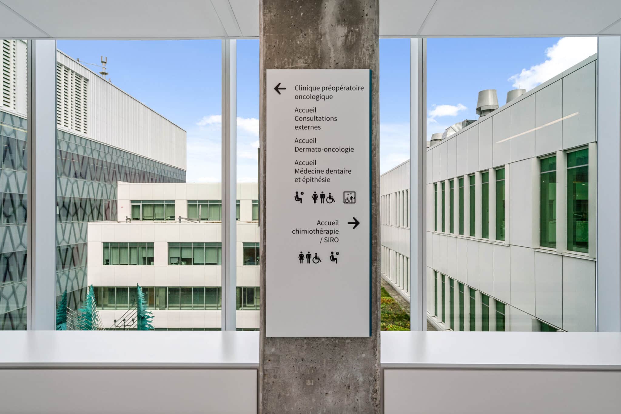 ARIUM was mandated to develop the wayfinding and signage strategy for the entire project. Carried out in close collaboration with various stakeholders (architects, managers, medical teams, and users), the signage program combines functionality and aesthetics. Seamlessly integrated with the architectural approach, the signage was designed to provide a clear, intuitive, and welcoming experience for users, while meeting the demands of a complex hospital environment.