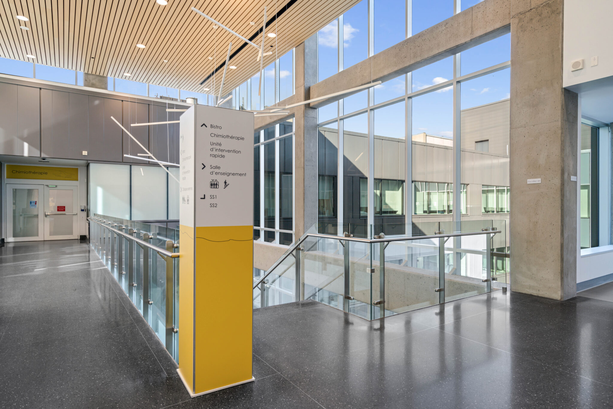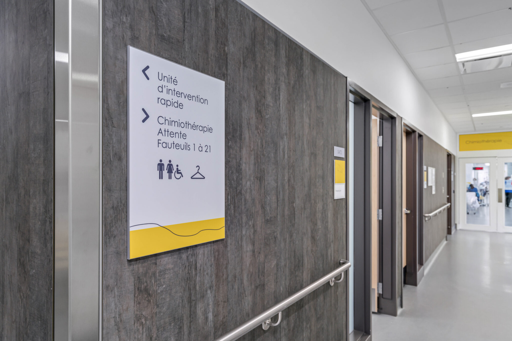 ARIUM was mandated to develop the wayfinding and signage strategy for the entire project. Carried out in close collaboration with various stakeholders (architects, managers, medical teams, and users), the signage program combines functionality and aesthetics. Seamlessly integrated with the architectural approach, the signage was designed to provide a clear, intuitive, and welcoming experience for users, while meeting the demands of a complex hospital environment.